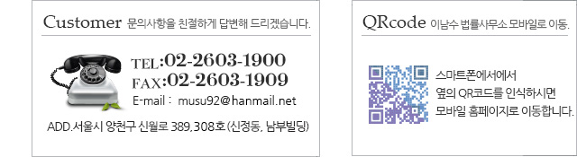 E-mail musu92@hanmail.net | Copyrights¨Ï2016 º¯È£»ç À̳²¼ö (¹ý¹«¹ýÀÎ °­³² ³²ºÎºÐ»ç¹«¼Ò) All rights reserved.|